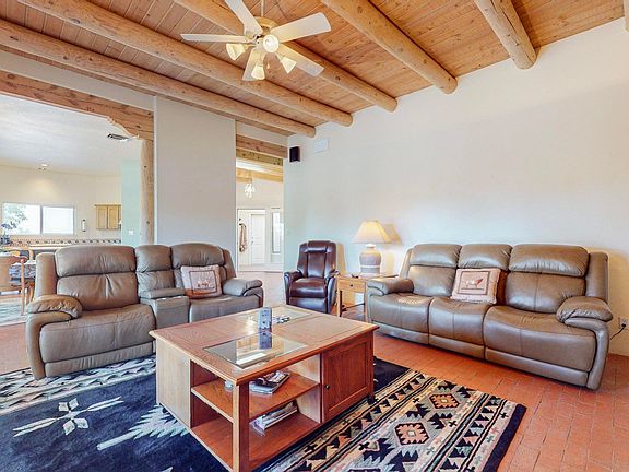 Buyer's Broker please see LO/SO remarks. This house is off the beaten path. Open floor concept. Great property to let you escape into nature. The road to the house is only 4.2 miles from the I-25 which offers 3 lanes all the way to the city. It's far enough to offer privacy in a secluded canyon protecting the house from noises and light that the city has; you can see so many stars at night. However, it is close enough that you can get to the city within 20 mins. The backyard is great for entertaining. It's quiet and inviting; it's a great place to connect with nature. Hiking trails nearby. Inside the house there is radiant heating for both the house and the oversized 2 car garage. A wood burning fireplace offers an authentic feel for becoming one with the high desert.