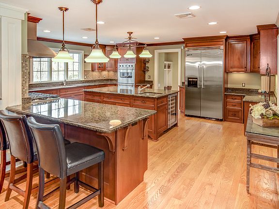 GORGEOUS 5 Bedroom/4 full/2 half bath custom Colonial on one of Madison's most charming streets! Gorgeous gourmet Kitchen with Viking appliances and huge center island; kitchen flows into breakfast room and lovely Great Room overlooking spectacular private yard and patio! Formal living and dining rooms with coifered ceilings offer wonderful entertaining space with beautiful woodwork and fireplace in LR. Window-lined office has french doors to patio and cozy den area. Attached garage opens into large mudroom and pantry area. Master suite with tray ceiling, fireplace, sitting area, two walk-in closets and a spa-like master bath. Large en-suite bedroom on second floor with full bath, walk-in-closet and storage area. Two other large family bedrooms and full bath located on second floor along with convenient laundry room and stunning hall with with tray ceiling. Lower Level Aupair Suite, exercise room, bar area and media room. This house sits on a professionally landscaped, GORGOUS property sits on charming semi-circle street close to Madison's town, train and schools!
