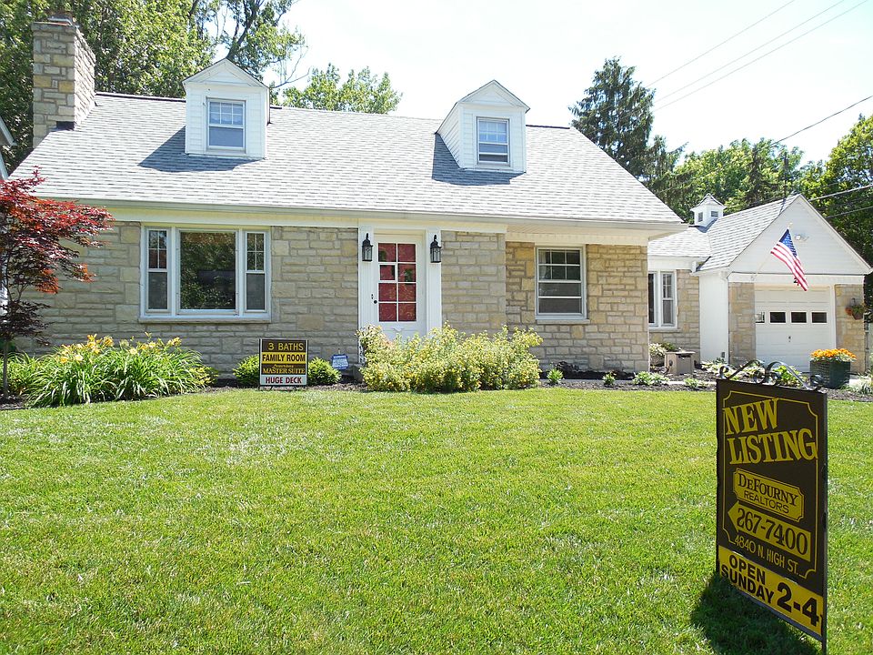 New Listing! Mid-Century stone front Cape features 3 Bedrooms + 3.5 Baths + 2 Garages + 2 Driveways. 1st floor Master Suite addition with Walk-in closet. 2nd & 3rd Bedrooms with Walk-in closets + Window dormers. Formal Living & Dining Rooms with refinished Hardwood floors. 2 Stone Woodburning Fireplaces. Remodeled Kitchen. 1st floor Office opens to Florida Room and fenced backyard. Updates include: Roof, HVAC, Dishwasher, Landscaping & lighting, Tankless Hot Water Htr., TimberTech deck, 200 am Electric, Garage door, Basement waterproofing system of French Drain & Sump pump and Finished LL Family Room. Steps from Whetstone Park of Roses, Library, Bike Paths, Restaurants, Shopping and the Best of Clintonville!