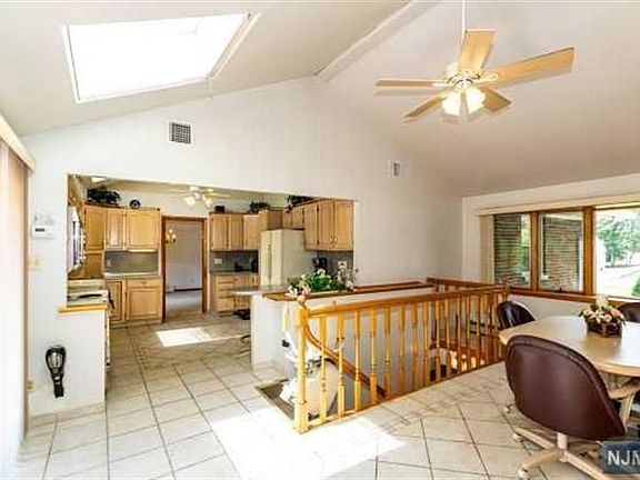 Impressive sprawling brick ranch on almost half acre of private property in the "Great Notch" area. Spacious living room with a fireplace. Formal dining room. Large master bedroom. Hardwood floors. Updated kitchen has recessed lighting, skylight, vaulted ceiling and ceiling fans. Large separate breakfast dining area has a bay window, vaulted ceiling, and glass doors to the over-sized deck with retractable awning. Walkout lower level has a generous family room, full bath, cedar closet, and gas fireplace. Plenty of storage in the workshop and laundry area. Garage with attic storage. 2-zone central a c, 3-zone heat. Newer hot water heater. Timberline roof. PSE&G easement at rear of yard.