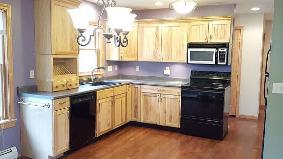 Open Concept bright and sunny one level living w/ a gorgeous fully applianced eat in kitchen featuring hickory cabinets, hardwood flrs throughout, gas fireplace and built in's, first flr laundry, large entertaining deck with views of the water, and partially finished walk out LL w/ radiant heat that could double your living space! Wired for generator. A great maintenance free home, move right in!