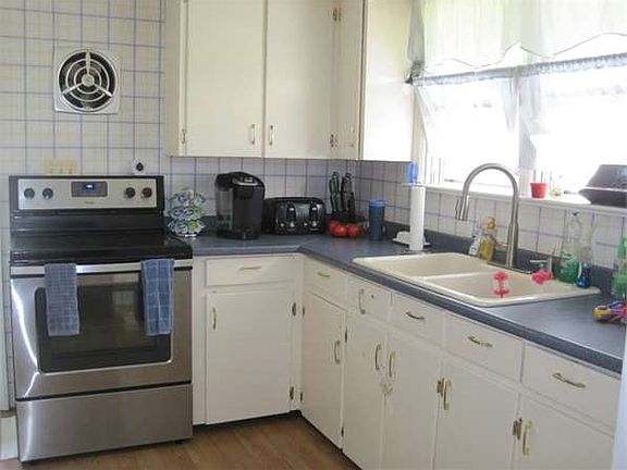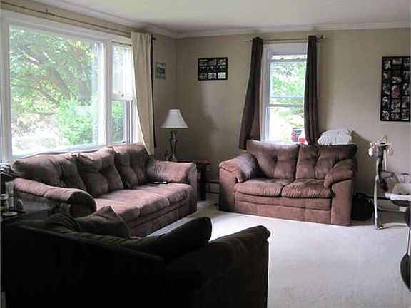 Charming Cape features: Full basement partially finished with 20x10 Entertainment room, office and wood stove. Laundry chute in the bathroom to the washer/dryer in the basement. Windows, roof, vinyl siding new in 2002. New range oven. Beautiful deck and stone patio. Custom paver walkway and coordinating shed. Landscaped lot. Public water and Sewer. Swing set is included. Large driveway plenty of parking.