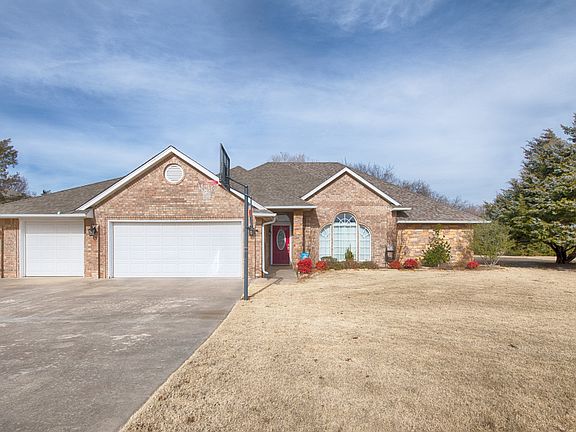 Beautiful home that sits on 1.5 acres with great curb appeal in the Grove School district. Has every feature you could want in a home for a great price.......This single story 3 car garage features an open floor plan with 3 bedrooms, 2 full bathrooms, 2 living areas, formal dinning, breakfast nook and a large kitchen . It also includes 2 barn doors going into the master suite and master bath. Heated floors through-out the master bath and master closet. The master bath has a large walk in glass shower with glass tile and subway tile and a HUGE walk-in closet with island in the middle and more closet storage than you can imagine!!!!. There is a large patio on the back of the home with outdoor BBQ/wet bar for 10 people with beautiful granite top that looks onto the in-ground swimming pool. Swimming pool features a diving board and a water slide. The 2nd seating area that over looks the pool is a great out door entertainment area. The home also has a 2000 sqft work shop with an office and full bath with granite counter top.