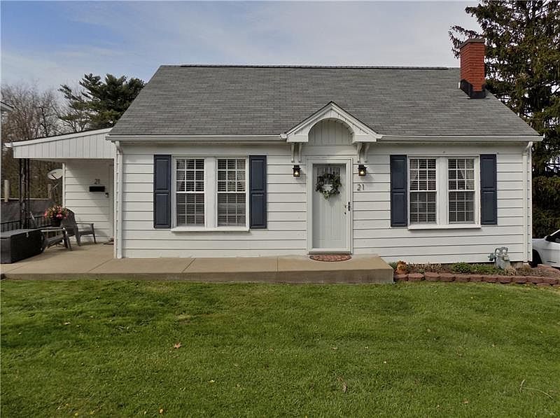 Cozy one floor living with finished attic and finished basement in Laurel Highlands School district. 2 bedrooms and full bath on first floor with living room with a gas fireplace. Nice updated kitchen. Top floor full size of home could be bedroom of office. Basement has great lounging area with Full bath including walk in shower and laundry. Walk out through an attached one car garage to the private deck with great view of Uniontown Country Club and the mountains. Additional off street parking available