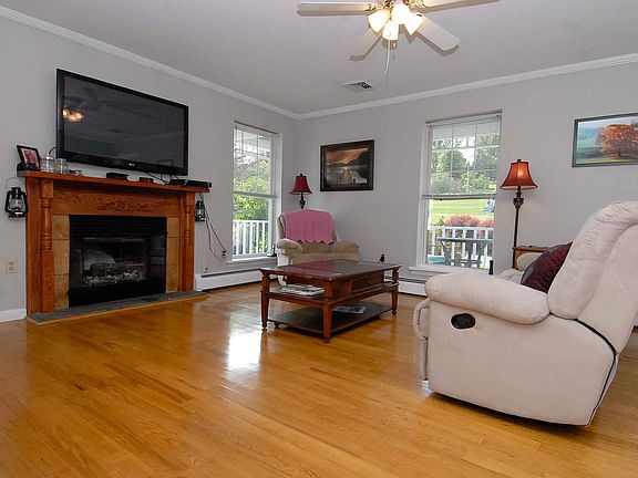 Beautiful Ranch on 1.25 acres of land w/3 full baths. Take a look at the super large wrap around deck & great landscaping for your enjoyment. The kitchen now has brand new stainless steel appliances, beautiful hardwood floors in the living room w/fireplace, dining room, entrance foyer and all three bedrooms which include the master bedroom w/ master bath. Also there is a full guest bath plus another guest bath in basement family room and central air conditioning. Extra benefits are a built in chair lift, invisible dog fence, crown moldings, handicap entrance & motion detector lighting.