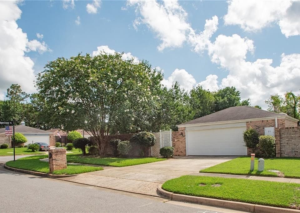 One of the largest homes in popular Cobblestone, located close to the University of South Alabama and Providence Hospital. This home sits on a corner lot on a quiet cul-de-sac and has a brick wall surrounding the property for extra privacy. Enter into the formal living and dining rooms which flow into the family room. The family room features a fireplace, built-in cabinetry, vaulted ceilings, a ceiling fan, and multiple sky lights. Off the family room, you'll find a sunny breakfast room with a wall of built-in cabinetry and this room is open to the sunroom (unique feature for Cobblestone). The kitchen is graciously appointed with 2 ovens, a stainless refrigerator and dishwasher, small island perfect for prepping meals, and a wet bar. There are 3 bedrooms and 2 baths with plenty of closet space, a laundry area, covered patio with ceiling fan, more green space than most homes in the neighborhood, and extra storage in the garage. Home is being sold as is, where is.