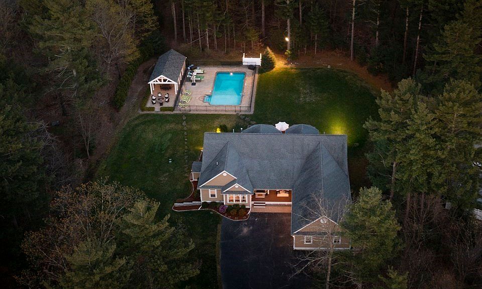 Gorgeous, estate-like, custom home, sitting on 2.32 acres at the end of a cul-de-sac with spectacular features, inside & out...an entertainer's dream! Incredible pool house with large patio, bar, fire pit abutting the in-ground pool. Inside is just as wonderful as the outside; large entryway with great views to the backyard through the living room with vaulted ceilings & french doors that lead to the beautiful back deck! Main level also features a front office, an amazing primary suite and a dream of a kitchen! Two large bedrooms on the 2nd level with options to expand. Lower level is ridiculously amazing in so many ways...movie theater, game room, office/bedroom and enormous gym!! This property does not disappoint, come see this gem right away!!