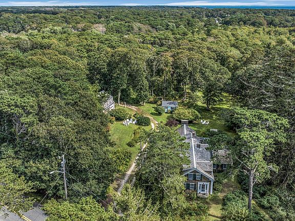 Enchanting Harwich Port estate features 2 separate homes & detached cottage on 1.39 acres up the road from Saquatucket Harbor & restaurants. The main house has 3 bedrooms, 3 full baths, 4 FPs, 2 full basements, oil heat & huge deck. Sunny open kitchen is enhanced with wide pine floors, palladian window, french doors, Rutt cabinets & butcher block island w/ sink. Spacious entertainment room has a cathedral ceiling, skylights, wide pine floors, Andersen windows & slider to deck. Brick FP is log burning. There is a 1st floor full bath, dining room & laundry. The living room w/ oak floor is located at the front of home. Two stairways lead up to the 2nd floor w/ 3 bedrooms. The primary bedroom has high ceiling & full private bath. The separate 1940's carriage house was a rental for many years. It has 4 bedrooms, 1 full bath , enclosed outdoor shower, open kitchen/dining/LR and one-car garage. The detached cottage has etched beams & cathedral ceiling. Treasured property is encircled with stone driveway, pines & gardens! A real GEM!