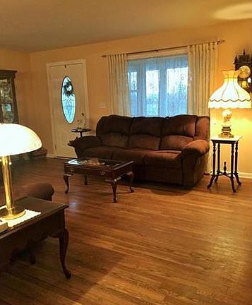This brick ranch is so much bigger than it looks...Beautiful eat in kitchen with Oak cabinets and abundance of counter space that is open to the large living room...Spacious master bedroom with 1/2 bath....enclosed porch off of kitchen adds additional space......"Summers Heat" wood burner that heats the entire house so you can save on gas bills... two car detached garage.....