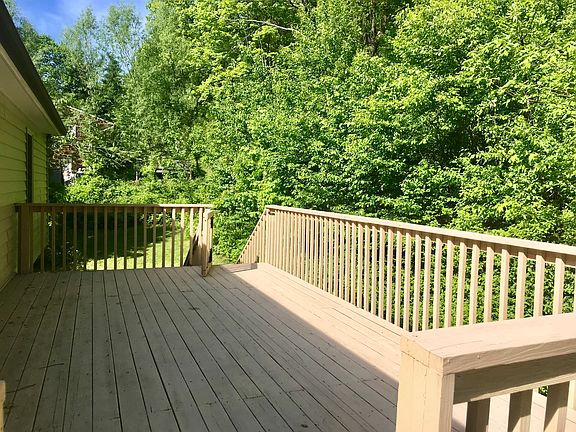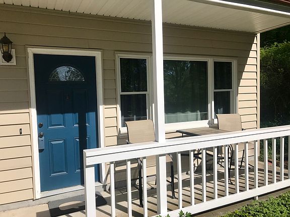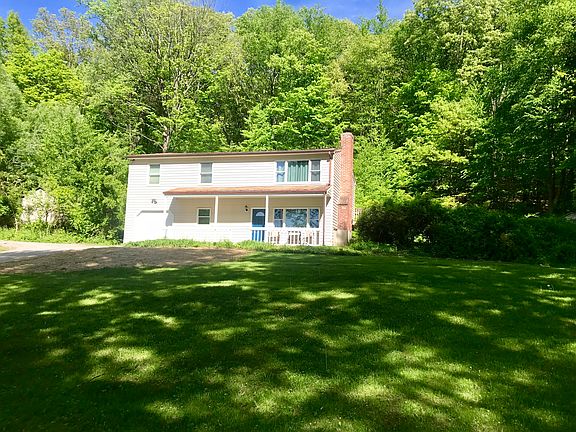 Beautiful High Ranch style home in desirable quiet location with open floor plan, front porch and garage. Lovely property and sprawling back deck overlooking wooded area perfect for outdoor entertaining. Updates throughout including roof and windows in 2009.High efficiency Peerless burner with oil tank 2010. Simply stunning easy flow floor plan, freshly neutral painted palette throughout, new light fixtures & bright living room with wall to wall carpeting. Formal dining room hosts sliders to walk out to private back deck. Eat in kitchen with breakfast bar, ceramic tile floor and pantry. Updated graceful white full bath and half bath on lower level. Four spacious bedrooms with gleaming hardwood like flooring and appealing color tones. Lower level boasts an abundance of space in the family room complete with wood burning fireplace, ceiling fans, built-ins, half bath, fourth bedroom and walkout to front and garage. Shed and lots of storage are an added bonus. Great tranquil and serene location yet close to town for shopping and restaurants.