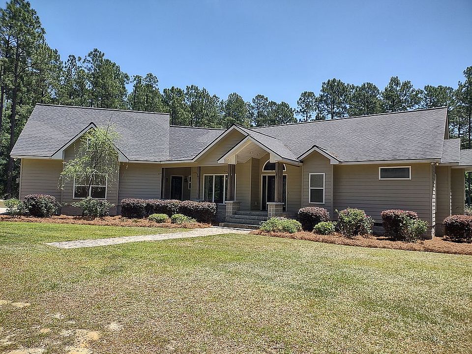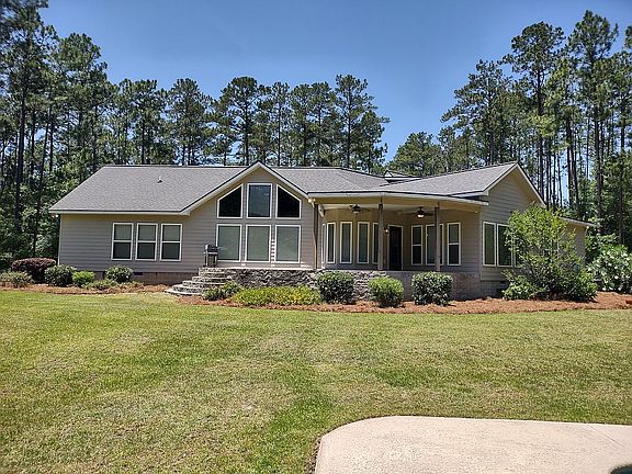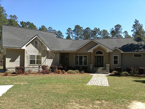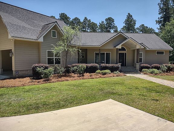 Gorgeous home on 6+ acres located just outside the city limits of Swainsboro, GA. Custom built 3BR, 3.5BA with a bonus room that has full bath that could easily be used as a 4th BR. This 2934sq ft home features vaulted and trey ceilings, masterfully crafted trim throughout, hardwood in living areas and master suite, tile in bathrooms, Jack and Jill bath. Master bath has double vanities, whirlpool tub, walk through tile shower with double shower heads, private toilet, walk-in closet. Master on main, formal dining/living room, breakfast area, family room off kitchen, large walk-in pantry, half bath off kitchen and gorgeous cabinetry throughout. Covered porch overlooks the 2017 built in-ground pool with diving board with new liner placed in 2022, swim-out and large back yard. Both heating/AC units replaced in 2019.