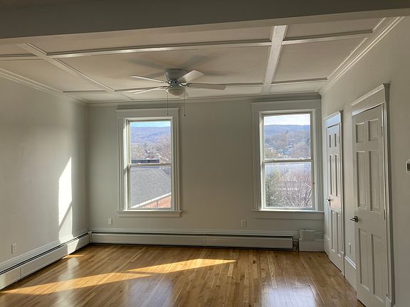 Two-bedroom with one full bath in a remodeled condo-style non-smoking building with electronic video card/key entry system. Light filled 3rd floor apartment features hard wood floors, gas fireplace, large double closets, sleak kitchen and tiled bathroom with in-unit washer dryer. Gas baseboard heat & on demand hot water, mini-split air conditioning, ceiling fans throughout. Cat friendly, for dogs see pet policy. One off-street parking space with dedicated EV charging available. Tenant pays gas, electric and cable/phone. Views to the east to watch the run-rise over Savoy Mountain and north along the Hoosic Valley. RENTING SIGHT UNSEEN Unable to tour the apartment? You can arrange for a friend to schedule a viewing in person. MAKING AN APPLICATION A completed application is required. There are no application or screening fees. MOVE IN COSTS There is no fees charged for move-in. At the signing of lease, a deposit and last moth rent is required. When you pick up your key your first month rent (or of moving mid month a pro-rated amount) is due. TENANT UTILITIES Tenants are responsible for their own electricity, gas (heat, hot water, fireplace and stove), cable and telephone charges. As a green building using high efficiency sustainable technology, low energy usage costs are expected. Tenant is not responsible for water, property taxes, trash or recycling costs. We recommend renters insurance. PARKING POLICY A dedicated parking space is included for each apartment. Most downtown parking is free on street with some metered parking on the main thoroughfares. There are approximately 1,750 spaces in the overall downtown area. PET POLICY We allow certain breeds of dogs and all domestic cats. Please contact us for a specific list. Vaccination certificates, local authority licenses and personal liability insurance is required. There is an additional Pet Rental Charge of $25 per month. RENTERS INSURANCE Renters insurance is recommended however, not required. - See the newspaper article Calling All Renters. Standard renter's insurance policy is usually $80-$200/year depending on the amount of coverage needed. Personal liability Insurance with a minimum $300,000 is required for pet owners. BUILDING SECURITY All entrances are accessed by security keypad using a key fob or personal access code. Each apartment has video entry control system for remote door unlocking for guest access. CCTV cameras are located throughout the public areas inside and outside the building. STORAGE IN THE BUILDING The apartment provide ample storage with numerous closets for everyday needs. There is currently no additional storage in the building. RECYCLING AND ZERO-WASTE TRASH The intent is to make the block a zero-waste. While we get the program up and running we provide full trash removal and recycling. SMOKING POLICY Smoking or vaping is prohibited inside the building and in all outdoor areas including the walkways, car parking and patio areas. ONLINE PAYMENTS Payments can be made online at the redpm web site.