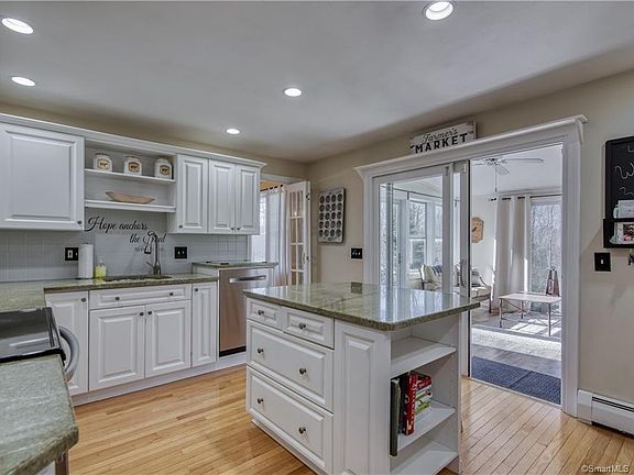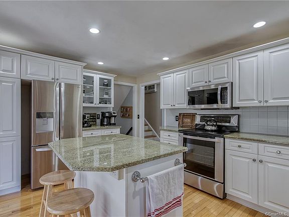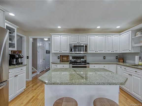 Be ready to fall in love! This Rare split feels like home! With 2308 of square footage living space plus additional unfinished basement for storage. From the moment you step into this home you appreciate the flow/floor plan and pristine condition. Lots of natural light adds to the cheeriness. Features through out including recessed lighting, French doors, built ins,crown molding, hardwood floors, central vacuum/ cedar closet. First level offers great space with formal LR with stunning fireplace/hearth. Dining room and updated kitchen with island/granite/white cabinets/stainless. Appliances 2 yrs old. You will spend many lovely times sitting in the sunroom accessed from kitchen. A few steps up and you have your bedrooms. Master suite w/half bath/ and two additional bedrooms/full bath. Wait, there is more! A few steps down to your remodeled LL inc. family room with gas fireplace/full bath/laundry room. The backyard will not disappoint. Level & approx. half acre. It is perfect size for privacy and relaxation. Pretty stone walls and deck area. Fire pit for chilly nights. Location adds to this perfection! Bike/stroll to Green. Minutes to Clinton beach, restaurants, outlets, I95. Home 's size/location/features will appeal to you if you are first time, down sizer/ second home get away! Home has been loved and enjoyed and as these sellers relocate out of state they are ready to pass this sweet home for new owners to enjoy. Sellers ideally would like to close @ June 23, end of school year.