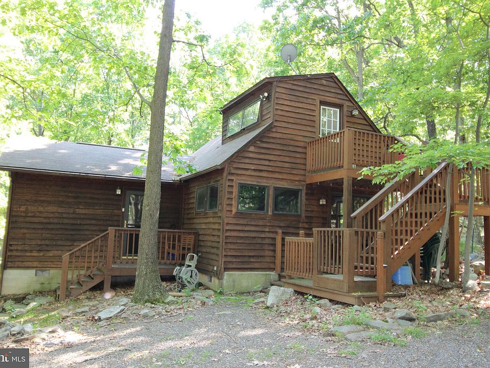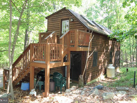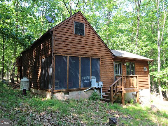 Adorable cedar chalet with mountain views n running creek. Peace and tranquility amongst trees and nature. Large 15x20 bedroom with 8x8 sitting/office room n 8x12 bathroom on upper level. Upstairs has separate entrance with multiple decks leading to lower patio. Perfect set-up for a separate apartment. Alcove area for a portable kitchen. Living room is 15x20 with propane fireplace n new vinyl plank flooring. Decks at front n rear exits of living room. Bath n laundry room also on lower level. Next level is 20x30 combo family room dining area n kitchen. Also an 8x12 screened porch next to family room. Several new ceiling fans through out home n vinyl floor for porch. Home also has a large crawlspace for storage. Home is very private n is a clothing optional community. All sizes approx. n property is 2 ac. $164500. Local agent will handle contract. Call for details 304-947-5115