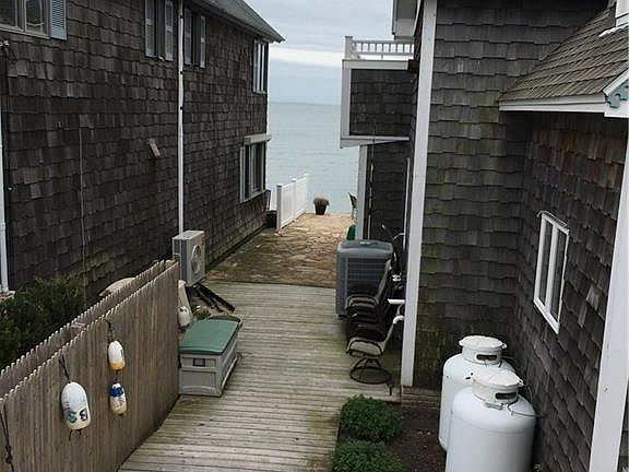 What a great opportunity to live by the sea all year round! This beautiful home features direct water front, private beach area, ocean views, 2 bedrooms, Master with full bath, family room with shelving for all your media needs and slider to deck overlooking the ocean. First floor features laundry room, open kitchen & dining area, sitting area and slider to patio, a den or office on first floor as well. 2 car tandem parking. NO PETS, NO SMOKING, References, Security, Credit Check, background check all paid by buyers. The home is shared with another home on the property. So tandem parking only.