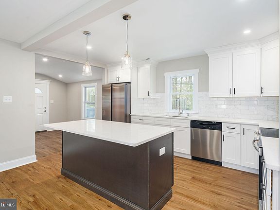 Proudly presenting 21 Peppermint Road, Levittown, PA 19056 – a beautifully renovated and expanded 5-bedroom, 2-bathroom home offering spacious living and a private retreat in the highly desired Plumbridge section of Levittown. This charming property has been tastefully updated throughout, blending modern comforts with classic charm. As you enter, you are greeted by a bright and airy living room, perfect for relaxing or entertaining guests. Pride of workmanship is evident as you take in all the beautiful finishes. The adjacent kitchen boasts white shaker cabinets with huge accent island, sleek quartz countertops and stainless steel appliances and subway tile backsplash making meal preparation a joy. You will appreciate the adjacent dining room for hosting those holiday dinners and special occasion. The home features five well-appointed bedrooms, each offering comfort and privacy. The 2nd floor primary bedroom features 2 large closets providing ample storage space. The bathrooms have been remodeled with contemporary fixtures and finishes, providing a spa-like experience. The 1st floor bathroom provides a tub shower surrounded by ceramic plank walls. The 2nd floor bathroom features a large stall shower also surrounded by ceramic plank walls. One of the highlights of this property is its expansive private yard, ideal for outdoor activities, gardening, or simply unwinding in nature's embrace. Imagine hosting barbecues or enjoying morning coffee in this tranquil setting. Also you will enjoy the huge storage shed providing ample storage space for outdoor storage and special toys. The home offers new 200AMP electric service and wiring throughout, new Heat Pump, luxury vinyl plank flooring, plush carpet, new bathrooms, new kitchen, new appliances and new siding. Conveniently located in Levittown, PA, this home is close to schools, shopping centers, parks, and major roadways for easy commuting to Philadelphia or New Jersey. 21 Peppermint Road offers the perfect blend of convenience and comfort. Don't miss the opportunity to make this renovated gem your new home. Schedule a showing today and experience the allure of 21 Peppermint Road for yourself!
