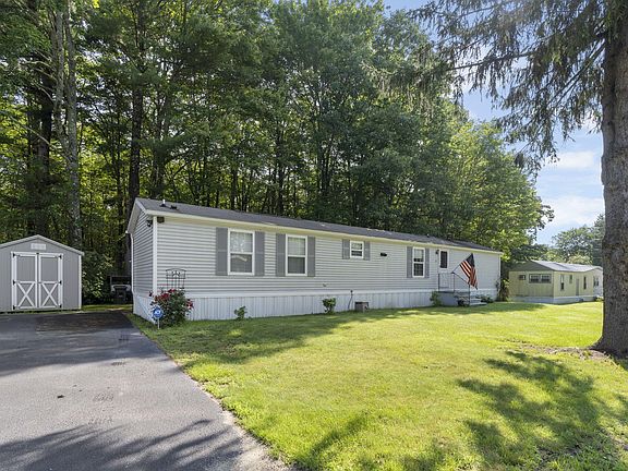 BACK ON THE MARKET to no fault of the property. Welcome to Blue Haven, a no age restriction park conveniently located off of Route 1 in Saco. The perfect location! This mobile home was brought up to today's finishes in 2020-2021. New flooring, paint throughout, appliances, light fixtures, vanities and a completely finished 3 season porch overlooking a wooded back yard. Yes, no neighbors out back on this bordering lot!