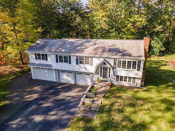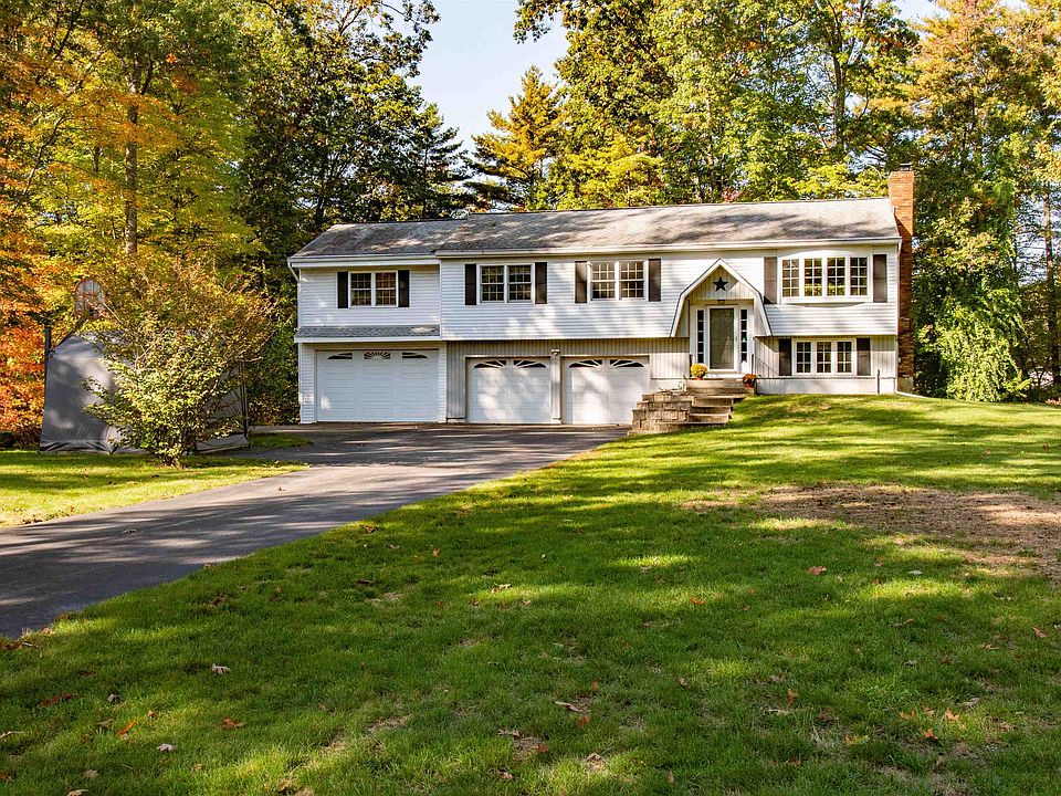 Well-maintained split in sought after Merrimack neighborhood is ready for new owners. The main level provides 3 good sized bedrooms, full bath and main living space with living room, dining room and kitchen. The deck is easily accessible for grilling all year round. Downstairs you will find a nice sized family room with pellet stove and beamed ceiling, ½ bath with laundry, and the heated sun room with hot tub and surround sound. Above the 3rd garage, you will find the man cave of your dreams! Pool table, wet bar and ½ bath makes this a retreat you won’t want to leave. 2 different heating sources, with propane and pellet stove gives you multiple options, and Central Air for the summer months! Need garage space or room for toys? 4 car garage, 2 bay carport, shed and portable shed means you can keep all the toys and cars clear of snow this season! Large 1+ acre lot in a cul-de-sac neighborhood. Easy access to highways, shopping and more. Showings begin at the Open House on Saturday, October 15 from 11 to 1.