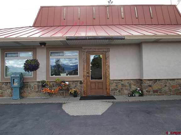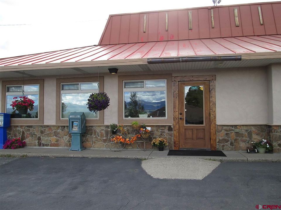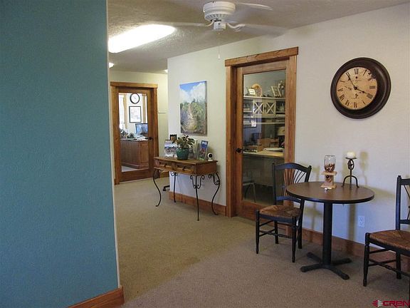 Highway 160 frontage with large mountain views. This building was originally a Pizza Hut then retail for 12 years and now real estate office. The 8 offices and conference room were recently added. The large kitchen room also works well as additional conference area. The back room is currently used for files, etc. 2 restrooms. 31 paved parking spaces. 3 storage units. 3 Phase power. . Natural gas. Town of Pagosa Springs Sewer, Pagosa Springs Area Water District. 6'x11' lighted highway sign. Occupancy available at close.