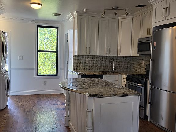 Available Now, we have a large 3 bedroom 1.5 bath duplex apartment with a shared back yard!! This apartment has it all, washer/dryer in the unit. dishwasher recently renovated and updated kitchen with stainless steel appliances. hardwood floors throughout. high ceilings. the main floor is an open concept kitchen/living room and there are 3 separate bedrooms on the second floor. each room can fit a queen size bed and has a closet! for your convenience the apartment has central heat and air conditioning. pets are allowed on case by case basis. Bushwick Ave/Aberdeen street L stop is 3 blocks away and Chauncey J,Z stop is 2 blocks away. Come check it out!