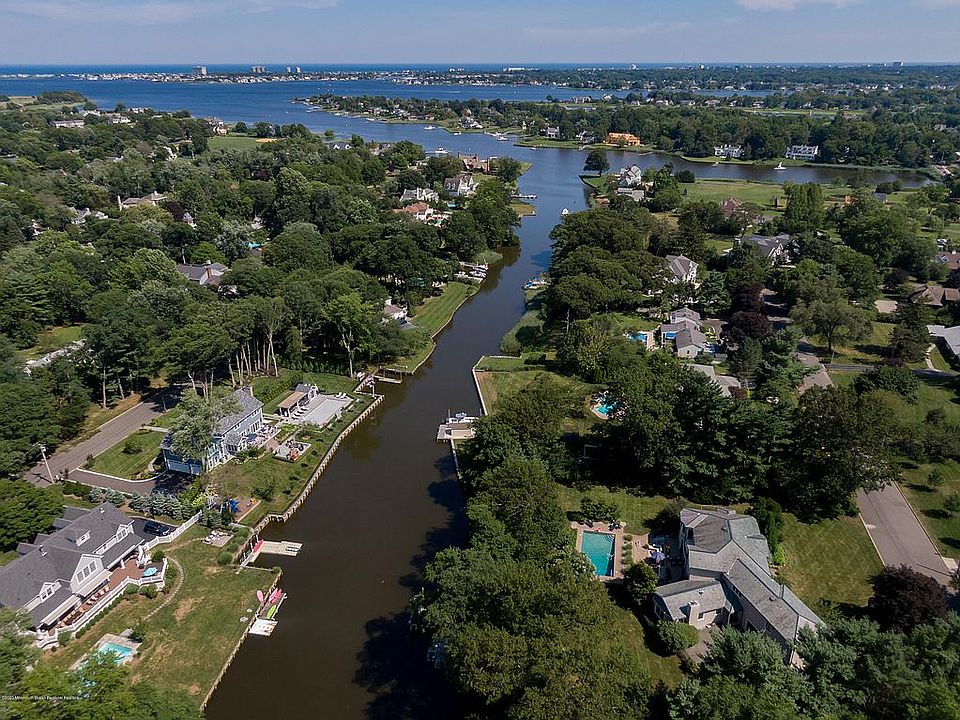 Beautiful waterfront home on lovely Little Silver Canal! W/DOCK, POOL, AND BOAT LIFT on 1.3 acres offering six bedrooms 5.2 baths & fireplace. Flawless craftsmanship & top of the line selections w/ high ceilings & breathtaking natural light. Sophisticated yet casual w/many custom details. Enjoy a fantastic gourmet kitchen w/huge center island, furniture-quality cabinetry by Mark Melli design, Viking, SubZero appliance including Haier wine fridge. Expansive FR w/vaulted ceiling & FP. The home also boasts gorgeous hardwood floors throughout, custom moldings and French doors which lead out to the spacious backyard and inviting in-ground Saltwater Gunite pool, and beautiful gardens. Lux master w/balcony, gorgeous en-suite bath, shower & separate vanities. Large BRs w/great closet space!