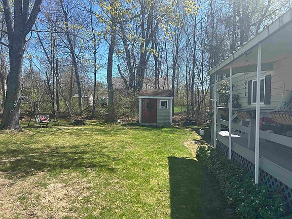 WHAT A BEAUTY!! This is a really well kept home with a fabulous covered porch that is 20' long as you enter and overlooking a landscaped yard! The home has a large front kitchen with loads of cabinets and storage! There is a large bay window in the dining room area with a built in hutch and there is a small washer and dryer nook tucked off to the side!! The home has lots of windows and the livingroom is good sized. There are 2 bedrooms and the master bedroom has it's own private bathroom as well with room to put in a large walk in shower or tub. The furnace is forced hot water baseboard heat and the boiler is approximately 2 years old!!! Hot water heater was replaced 6 years ago as well. What a nice looking home and what a price!!! The park fee is only $370 a month and there is paved parking for 2 cars. This is the ONE