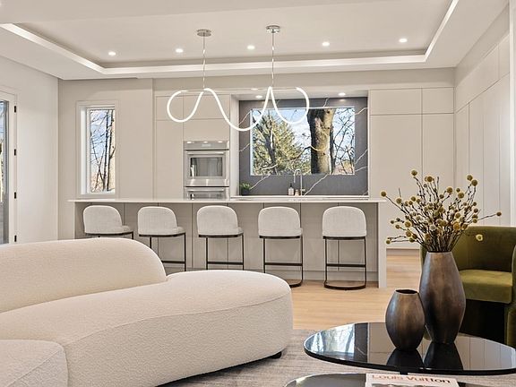 This trendsetting, modern home is exceptionally crafted and architecturally distinctive. From the moment you enter the home youll be in awe of the grand two-story foyer, an architecturally innovative floating staircase, and over-sized South facing windows. On the first floor a living room and serving pantry leads you into a large dining room with a double sided fireplace for separation from your kitchen with an oversized island, Thermador appliances, a hidden walk-in pantry, and sleek taupe cabinets. Theres also a full wall of sliding doors giving you access to an oversized, covered mahogany deck. The six bedrooms all have en-suite baths, including one on the main level. The primary bedroom has its own private deck, a beverage fridge, two generous walk-in closets, and a luxurious bathroom. The lower level features two bonus spaces perfect for a movie theater or gym. Situated in Waban Village, one of Newtons most desirable neighborhoods, this home offers an irreplaceable lifestyle.