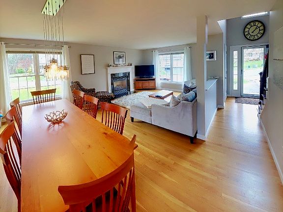 From the moment you turn on to Pineo Farms Road, you'll want to call this place home. This particular unit is perfectly situated so you have a great side-yard and views on the back side. As you walk through the front door of this home, your eyes are drawn to the new and gorgeous wrought iron balusters, and the open flow of the first floor. Lovely hardwood floors gleam in the living room as the sun pours through the large windows. The floor plan is open and comfortable, so while cooking in the kitchen you can still watch the game or enjoy the gas fireplace. The kitchen offers plenty of work space, SS appliances, a new tile backsplash, and granite countertops. Just around the corner from the kitchen is a nice den or home office. Upstairs offers an open landing, laundry, and three generously-sized bedrooms. The lowest level offers a glass sliding door and plenty of headroom if you want to finish the basement.