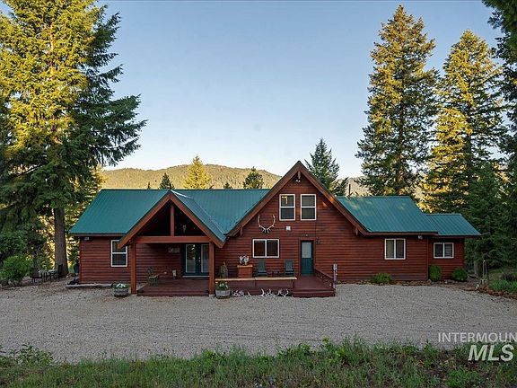BEAUTIFUL VIEWS and peaceful tranquility await you on this 23.76 acre property that backs to 3000 acres of National Forest! The 2224 sq ft main home has been lovingly updated throughout! 3 beds 2 baths on single level w upper loft bonus room. The great room boasts a huge wall of windows with an incredible mountain view to Bogus Basin. You will be entertained by the elk, deer and the occasional moose that like to visit your yard! The large open kitchen offers all newer SS appliances. Beautiful brushed leather granite countertops and newer flooring throughout the entire house. New furnace & AC/heat pump. New water heater. 48X40 shop has an additional 960 sq ft of living space. Shop offers 1.5 baths, two lrg work rms, RV garage w power, water & dump station, on it's own septic, new water heater, automotive garage area & a fully furnished bunkhouse living area upstairs. Hunt & shoot on your land & adjacent forest land. Roads maintained for year round access.