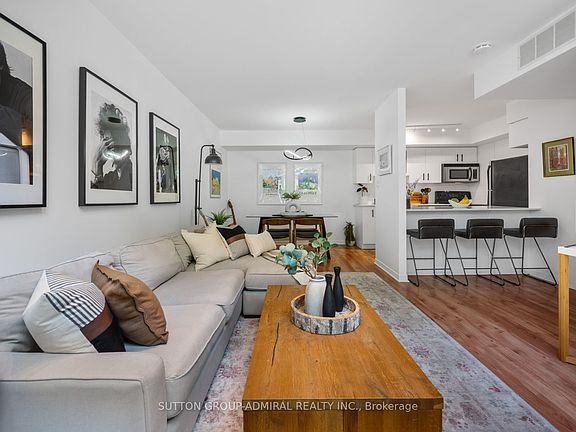 Experience the best of Toronto living in this charming 1+1bedroom townhome-style condo, perfectly situated where Liberty Village meets King West Village. This vibrant pocket of downtown offers an unbeatable blend of style, convenience, and community just a short stroll to the Exhibition GO Station, Exhibition Place, and the scenic waterfront trail. The bright, open-concept main living area maximizes every square foot, creating a welcoming space for both relaxation and entertaining. The modern kitchen features a sleek island with bar seating for casual meals, while the dedicated dining area sets the stage for memorable dinners with friends and family. The cozy bedroom offers a quiet retreat, and the versatile den currently serving as an office and storage space can easily adapt to your lifestyle. Steps from your front door, you'll find trendy cafés, restaurants, and boutique shops, along with seamless transit connections to the rest of the city. Enjoy peaceful green escapes in nearby parks, then immerse yourself in the energy of Liberty Village and King Wests vibrant dining, nightlife, and cultural scene. Whether you're taking in events at Exhibition Place or biking along the waterfront, everything you love about downtown living is right here. With it's smart layout, prime location, and dynamic surroundings, this home is perfect for first-time buyers, young professionals, or anyone seeking a stylish urban base in one of Toronto's most connected neighbourhoods. Your city lifestyle starts here.