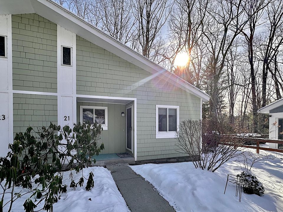 Sit at your dining room table and enjoy the sunshine and wooded views! Located in Beaver Meadow Village Association enjoy your one level, 2 bedroom condo, with amentites such as shoveling to your door and trash bins put curbside. Beautiful hardwood floors in the kitchen and dining area, bedrooms and living room is carpeted. This unit has one large bathroom with a walkin shower plus the washer and dryer are located in the bathroom. One car deeded carport on paved roads. Enjoy the association heated inground pool and clubhouse. Close to Beaver Meadow golf course and walking trails.