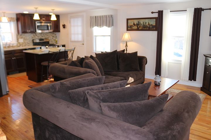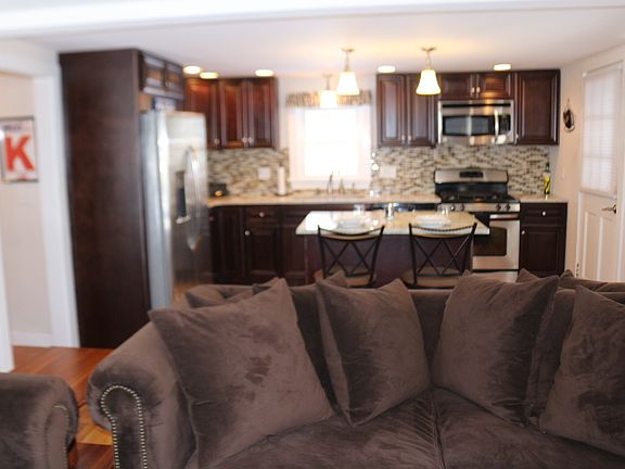 Beautiful totally remodeled Cape only 3 years ago! Open concept 3 BDRM Cape with gleaming hardwood floors throughout and 2 FULL tiled Baths! Eat-in-kitchen with gorgeous granite counter tops and granite center island with seating for two, Upgraded Stainless steel appliances including gas range, microwave, refrigerator w/icemaker and dishwasher. Versatile open concept floor plan allows Kitchen/Living or Kitchen/Dining depending on your lifestyle. Separate formal Dining Room and a 1st Floor bedroom or office. Two huge front to back bedrooms upstairs with lots of storage space. Full baths have elongated toilets and oversized sinks with rich dark wood vanity cabinets. Full basement for tons of storage space or future expansion. Level fenced yard is great for entertaining a crowd! All mechanics:gas furnace and central air, roof and windows are 3 years old. Public water & Sewer. Close to highway, mall and all area amenities. This home shows beautifully and there is NOTHING TO DO BUT MOVE IN!
