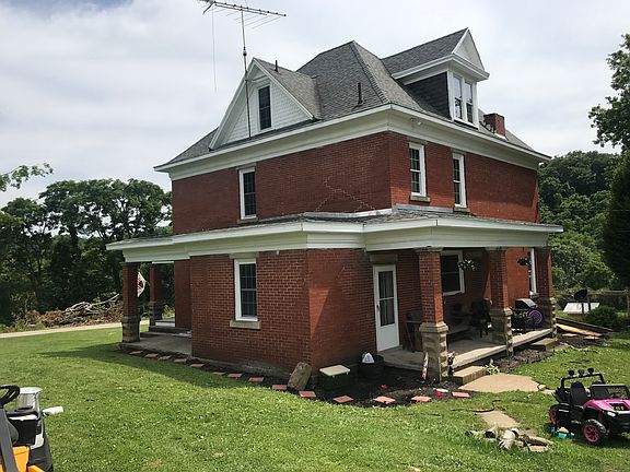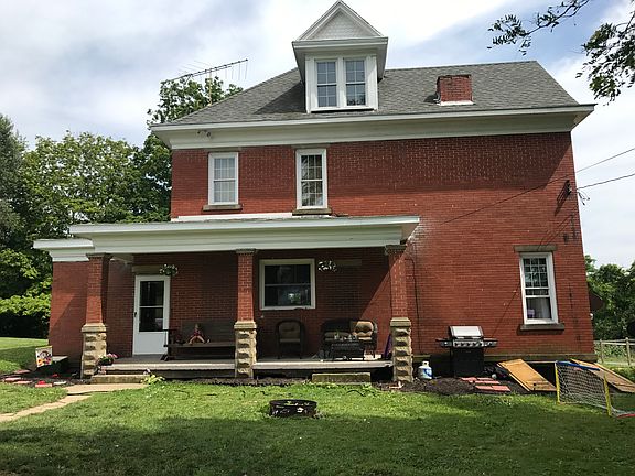 This beautiful brick farmhouse sits on just over 6 acres of flat property. Settled just a few miles off route 40 in a quiet neighborhood, convenient to shopping. The huge island in the kitchen and front wrap around covered porch is just a few things that make this home so great. It also a covered rear concrete porch. The home was newly remodeled and updated between 2014-2018. All new slate appliances, hardwood flooring throughout, and fresh paint throughout. Also there is city water hooked up but a working spring is also available in the premises. The full bath and half bath were also remodeling. A roughly 500 sqft storage shed is available next to the home also, along with a 30ft by 100ft treated lumber fence for your animals. This home is great for expansion with all the property available and is a must see.
