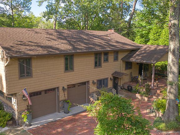 Lakefront living at it's finest! That's what you'll find in this private lake community. Imagine living in this picturesque lakefront home. So many unique features throughout. This multi-level home has room to roam and has been entirely remodeled. Beautiful views of Blue Lake and woods from many of the rooms. The main level has an open floor plan with wood look floors throughout the Living Room, Dining Room and Kitchen. The updated kitchen with 42" cabinets, solid surface counters and stainless appliances looks out over the lovely front gardens (check out the cool ceiling!) The kitchen and dining room are separated by a peninsula breakfast bar with room for barstools. The living room and dining room are open to each other with beautiful views of the lake. Enjoy the Tuscan styled gas fireplace on those wintry nights. Down a few steps to the Family Room with front and back access to Professionally Landscaped English Gardens. On this level is a full laundry room (#1) and full bath (#1) and access to the 2+ car garage with large workshop area or storage. Up from the main level are 2 generously sized bedrooms one with full bath (#2) making it a perfect guest suite. A hall bathroom (#3) services the other bedroom on this level, currently being used as an office, and bedroom #4 on an upper level. Laundry Room (#2) is also down the hall. To the end of the hall is the beautiful Primary Suite with cathedral ceiling and private balcony overlooking the lake. The perfect place for morning coffee and reflection. The walk-in closet with custom built-ins will hold more than you can imagine including the treadmill. Now to the luxurious primary bath room with custom double vanity, fully tiled steam shower with custom features and a separate 2 piece water closet. Custom window treatments throughout the home are included along with both washers and dryers and a security system. Let's go outside to tour the professionally landscaped gardens and paths that lead to the large bricked front porch and back bricked deck. You'll find a potting shed and composite dock overlooking the 210 ft of lakefront and wooded splendor on a .6 acre lot. Amazing privacy! The exterior of the home is low maintenance with stone and vinyl cedar shake look siding. Loads of storage with 2 floored attics. It has been meticulously maintained and completely renovated and remodeled (2008) with all high end and unique fixtures. Seller has been proactive by having the septic inspected with a passing cert. I could go on and on talking about this beautiful, no "cookie cutter" home but you're just going to have to call and make an appointment to see it all for yourself!