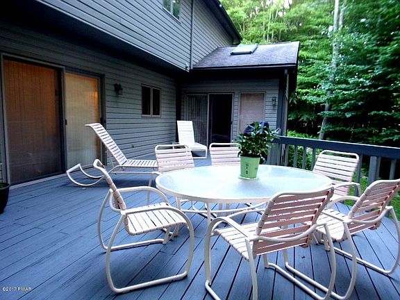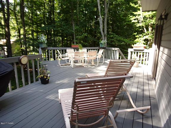 Contemporary meets traditional in 5BR/3.5BA center hall jewel in The Hideout. Tiled entry foyer leads cathedral light and bright family room, living room with fireplace, and formal dining room. Dream cherry kitchen features pantry, Bosch dishwasher and JennAir Range, eating peninsula and breakfast nook. Retreat outdoors to entertainment sized deck or adjacent Florida Room complete with hot tub overlooking a forested backdrop. Master suite offers room to roam with vaulted ceiling,walk in closet and jetted bath tub. Additional 2 bedroom and 1 bath complete the 2nd floor. Lower level houses another family room and recreation spaces, 2 more bedrooms, full bath and storage areas Ideally situated near marina on 240 acre motor boating lake and Roamingwood Park for fishing and afternoon picnics