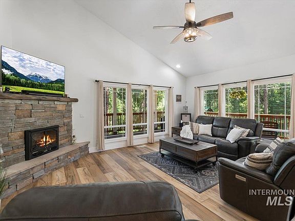 Welcome to your dream retreat in the mountains! Nestled within the breathtaking landscapes of a serene mountain resort, this remodeled cabin offers the perfect blend of rustic charm+modern luxury. Enjoy the views from a 930sqft wrap-around deck. Step inside and be captivated by the warm and inviting atmosphere created by the thoughtful finishes, stone accents, and cozy fireplace. The open-concept living area is thoughtfully designed to provide a seamless flow between the great room, dining area, and kitchen, making it ideal for entertaining. The fully renovated kitchen is a chef's delight, boasting high-end stainless-steel appliances, custom alder soft-close cabinetry, and ample quartz counter space. The home features 4 spacious bedrooms, each tastefully decorated to create a peaceful ambiance. Oversized 576sqft garage w/ 12' door to store all your toys! Steps from #10 tee box and #18 green. Terrace Lakes Resort offers amenities such as an 18-hole golf, hot springs pool, and more! Most furniture included!