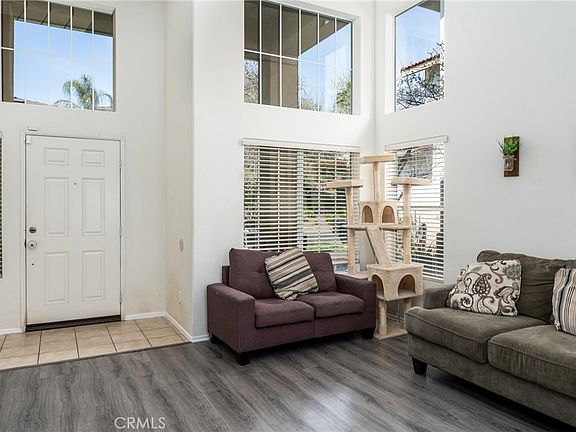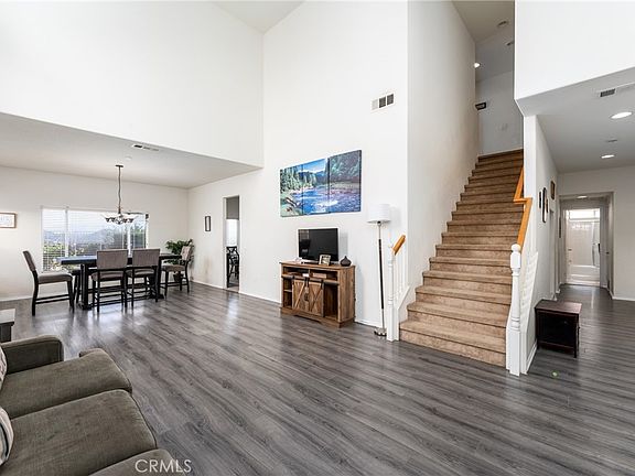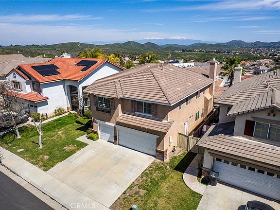 Stunning 4 bedroom, 3 bath home in the Tuscany Hills community! Downstairs boasts wood laminate flooring throughout, a spacious living and dining room with picturesque views! Gourmet kitchen featuring granite countertops with barstool seating, and a spacious pantry. The kitchen overlooks the family room, complete with a fireplace and entertainment nook showcasing beautiful city vistas. A convenient bedroom and full bathroom are situated downstairs. Upstairs, the expansive primary bedroom offers a private balcony with breathtaking views of Tuscany Hills and Canyon Lake. The primary bathroom features dual sinks, a vanity area, separate shower and bathtub, along with a spacious walk-in closet and extra mirrored closet. A massive bonus room that could be an entertainment area or playroom. The 2 secondary bedrooms share a third bathroom with double sinks. Additionally, there's a separate laundry room upstairs for convenience. The backyard is an entertainer's dream, featuring a built-in barbecue, covered patio, playground, and stunning views visible from multiple vantage points. You will love the dual A/C units for each level as well as the 3-car garage! Enjoy the fact that there are no neighbors behind you or in front of you! Just a short walk thru the gate at the end of the cul-de-sac to the Tuscany Hills community amenities, which includes an oversized swimming pool, wading pool, exercise gym, tennis and basketball courts, a clubhouse, and a private park. This home is also a close in proximity to the Elementary School.