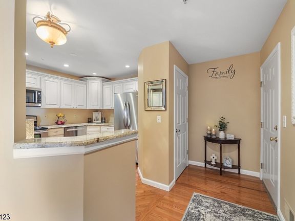 Updated 1st fl., light and bright Essex II, HW fls., 2 stunning renovated bathrooms, renovated Kitchen granite and stainless, Primary en suite walk-in closet, TV in 2nd BR. included, Washer/Dryer, tons of storage in expansive & private bsmt., 1 car garageopener next to unit. Take advantage of Pool, Clubhouse, Tennis Courts, Playground, Bike Path, On-Site Property Manager. Desirable Basking Ridge School System. Ample Guest Parking. Convenient to Rts. 78, 287, Mid-Town Direct Train to NYC.