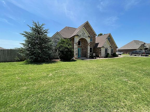 Imagine yourself in this lovely 2295 sq ft 2 story home located on a large lot in Country Aire Estates. Features 4 bedrooms, 2 1/2 baths plus an office. This stunning home received new windows and a sliding door in Aug 2021, a new roof in October 2021 with the addition of gutters, as well as a new roof on the outdoor shed and new garage door in June 2020. The water heater heater was replaced in March 2022. Fridge purchased in 2020 will stay with the home. There is a large laundry room with tons of storage and mop sink. Kitchen has stainless appliances, beautiful cabinetry and separate pantry. Living room has high ceilings and pre-wired for surround sound, built-ins and propane log fireplace. Huge master suite with his and hers closets, 6ft jetted tub, separate shower and built-ins. Upstairs includes two attics and a large bonus room which was recently converted into a 4th bedroom. Property sits on an established yard with landscaping, privacy fence, plus 12x16 storage shed, fully insulated 30x40 shop with heat and epoxy floor. The garage is not only large enough for two cars and storage it also has a flush mount storm shelter in the garage floor that seats 6-8 persons. The septic was inspected in June 2022. There is also an annual service contract for the septic that started in June 2022. The 30x40 shop includes a 15ft custom built theater screen for all your entertainment needs, 12ft side walls, and a large 10x12 roll-up door. While meeting all of your entertainment and family needs, this home is also conveniently located in Elgin School district, only a mile from Lake Ellsworth, and 15 minutes to Fort Sill. The large fenced in back yard offers a covered patio wired with surround sound, as well as a 220v junction box already wired for a hot tub. The spacious back porch features a custom built outdoor kitchen with concrete counter tops and high end grill. The privacy fencing extends from the front yard to both sides of the back yard with chain link on the back for complete view of shop and portable building. Your dream house is ready for viewing upon appointment. Contact us today to schedule a viewing of your next home, or if you have any questions. Home warranty will transfer to new owner, starts 7/5/22. *Square footage based off most recent appraisal; buyer to verify all information.