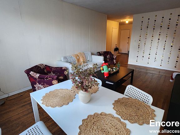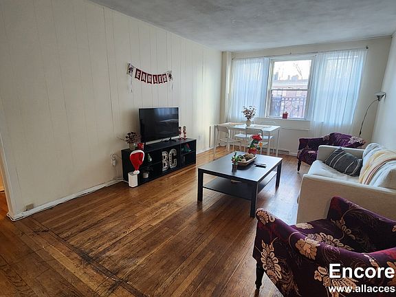 Eat-in kitchen features dark wood cabinets, granite countertops and new appliances + pantry. Foyer and a coat closet when you come in. Spacious living. Very spacious bedrooms that will fit comfortably Queen size beds, desks and dressers or other furniture. Bathroom has a Tub/Shower.