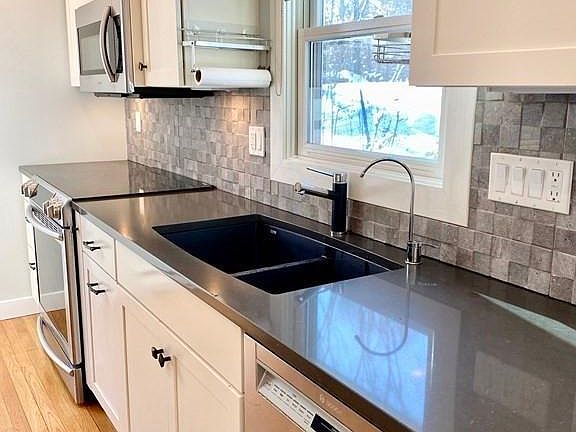 Charming , energy efficient gambrel cape available for rent with 4 bedrooms,& 2 full baths. Fresh contemporary kitchen offers a bright airy open floor plan with dining area with slider opening to the deck and yard. On 3 levels this home offers a finished lower level with wood stove, a main living area with kitchen and dining area, bedroom or home office and full bath. The 2nd floor offers 3 generous bedrooms and full bath. Private back yard is fenced and offers bird feeders and interesting landscape. Privately situated on a dead end street, in a convenient neighborhood , just minutes to shops in Lexington & Bedford.& Rt 4-225 & Rt 95. The sought after Estabrook School is about 1 mile away. Dogs welcome. Come take a look. New electric car charger.