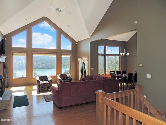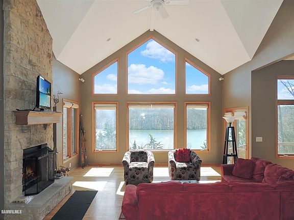 Listen to the rush of water as it passes over Thunder Bay Falls from this stunning contemporary perched high atop a limestone cliff overlooking Lake Galena offering absolutely breathtaking panoramas and endless lake views in one of the most unique and coveted locations The Galena Territory has to offer. Lake Galena is visible the second you enter the main floor offering an open and airy great room with floor to ceiling stone fireplace, dramatic wall of windows highlighting the beautiful waters beyond, and cathedral ceilings, separate and spacious dining area that feeds to a beautiful kitchen with solid surface counters, eat-at breakfast bar, upscale stainless appliances including two dishwashers, and an incredible vantage point of the living area and lake beyond combining to make a space ideal for entertaining, conveniently located laundry/mud room and half bath, and master suite with vaulted ceiling, more incredible lake views, two closets (one a walk-in), and luxurious master bath with tiled shower with built-in seat, double vanity with seated space between, and even a jetted tub with windows looking to the lake and beyond. Descend to the finished walk-out lower level and you are immediately greeted by a large, light and bright family room with room windows framing in the lake and surrounding woods, three comfortable guest bedrooms, two nicely appointed full baths (one private as part of a secondary suite), bonus room for hobby/office/den, and utility room with space for storage within and under stairs. Outdoor spaces include a generous rear deck and huge screened porch each offering the ability to take in the beauty of Lake Galena or the sounds of the spillway falls just beyond, as well as an expansive covered front porch looking over the manicured front yard and treed approach from the private end of cul-de-sac access. Extra deep two car garage allows ample room for vehicles and storage. Come experience a property that combines a distinctly unique setting, pristine lake views and the utmost in tranquility. **Total square footage is approximate and combines main level square footage from Jo Daviess Assessor and approximate lower level square footage with deduction of approximate unfinished utility room dimensions from total Assessor footprint. Parcel is combination of Thunder Bay 7, Lot 6 and Parcel 6 in Add. to Thunder Bay Unit 7. Lot dimensions combine sides due to irregular shape.