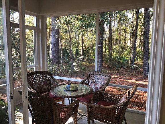 Robin Villa in the popular Aviary neighborhood of Sun City Hilton Head. Walking distance to Hidden Cypress Center (pool, golf, fitness center, restaurant). Walking distance to pickleball, baseball, dog park and woodworking shop. Private wooded view on a quiet cul-de-sac. Fully screened patio. Kitchen remodeled in 2012. Landscaping provided by neighborhood, cost included in HOA fees.