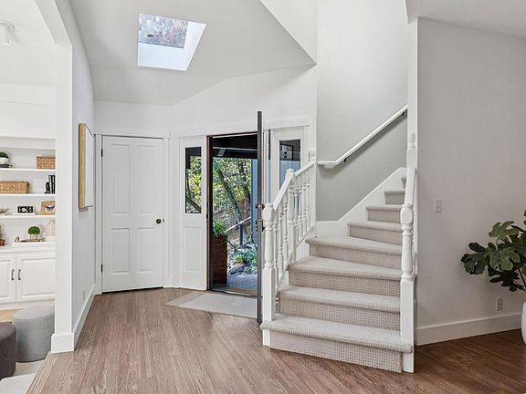 Akin to an upscale, elevated treehouse, this Sleepy Hollow home is designed for gathering. With a larger than life great room at the center of it all, there will be no shortage of family celebrations, cozy movie nights and festivities with friends. Here, generous windows and skylights frame feel good glimpses of nature at every turn. A freshly renovated kitchen and dining area add to the open living space and encourage together time -- almost all the time. Three spacious bedrooms, including a primary suite with streaming natural light and a spa like bath, are found upstairs and bode well for when private time is needed. Just outside enjoy sitting under the canopy of trees on numerous outdoor decks. Or pass time workshopping in the substantial 2 car garage. But truth be told this treehouse isn't really a by the book treehouse. It's set in the super accessible FLATS of the coveted Sleepy Hollow neighborhood where residents have access to some of the best trails in all of Marin, and a remodeled community center and pool. Here, walking dogs, biking kids to school and chatting with your neighbors isn't just common, it's almost a rite of passage.