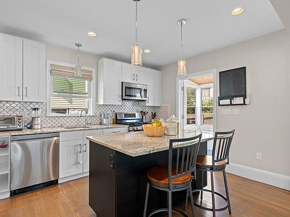Move right into this bright and spacious 3 bed colonial conveniently located in Medford. This recently renovated home features all the modern amenities including a fully renovated kitchen with stainless steel appliances, gas cooking and heating, young roof, fenced in yard and oversized patio perfect for entertaining. Open concept design allows for seamless first floor living. Enjoy the abundance of natural light that flows directly from your living room into spacious kitchen with island. Step into your three-season porch for easy access to your private outdoor oasis. Rounding out your first floor is a dining room with a charming brick fireplace. The second level boasts a master bedroom with his and her closets, plus two additional bedrooms and a beautifully renovated spa like bath. A commuter's dream within walking distance to the train, and easy access to all major highways, shops, restaurants and the Middlesex Fells.