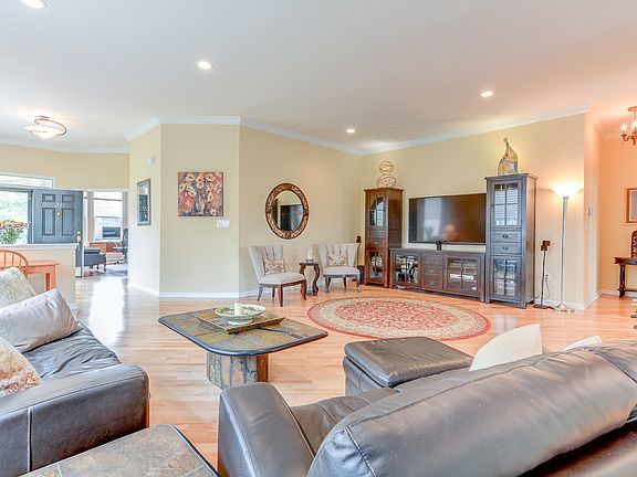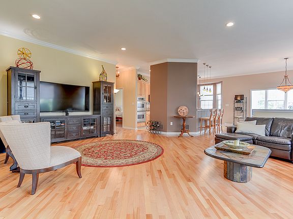 Walk through the front door of this home at the very end of the cul-de-sac and enjoy the western lake view in this Captiva model. The open floor plan includes two bedrooms, two full baths, large den and sunroom. Entertain friends in the expansive great room or sit out on the spectacular patio with long and wide lake views while enjoying the sensational sunsets. With over $100,000 of upgrades, this home offers ten foot ceilings, crown moulding throughout, wood and tile floors throughout, stainless steel appliances, a large private paver patio with built-in grill, and bay windows in the kitchen, den and master bedroom. Topping it off are the coffered ceiling in the den and tray ceiling in the large master bedroom. The master suite also features two walk-in closets and dual vanities in the master bath. The two car garage has a staircase leading to the additional storage loft. Four Seasons at Upper Freehold uniquely contains only 387 homes on 400 acres of beautiful, mature landscaping. Amenities include a large clubhouse with a fitness center, indoor and outdoor pools, tennis courts and bocce courts. Furnishings also available.