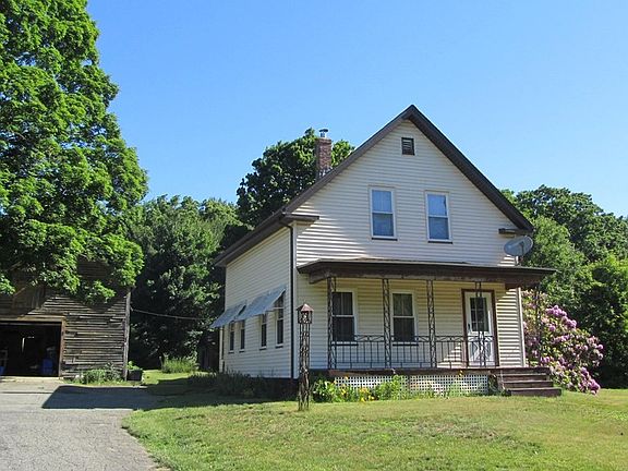 This 7 room 3 bedroom 1.5 bath antique colonial has lots of charm including hardwood floors/ built in china closet in dining room/ knotty pine den/lots of nooks and crannies! Side porch plus 2 storage areas off kitchen ideal for panrty and larger storage items/ walk in attic/2 story garage/ outbuildings perennial gardens /level lot /easy access to major routes and Rail Trail/Updates include most windows/ Roth oil tank and roof.