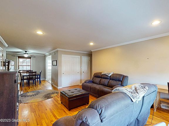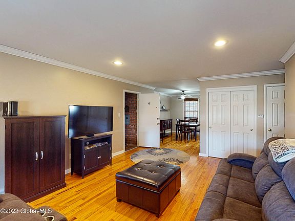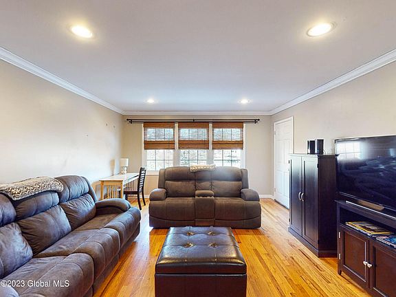 Best & Final Offers Due 2/18 @ 4PM. Beautiful Delmar condo, steps from 4-Corners & rail trail. Bright & spacious w/ hardwood floors throughout. Private back porch overlooking wooded lot. Updated kitchen, SS appliances, soft close custom cabinets, Corian counters w/ undermount sink & disposal, tile floor, tile backsplash. Updated bath w/ new sink, shower, toilet, bidet, tile floor, ceiling fan, and laundry area. Updated blinds, guest bedroom w/ open closet. Laundry in unit. Detached garage & basement for extra storage. New water heater ('23). HOA includes: water, garbage/recycling, lawn care, plowing, ext maintenance. Walk to post office, Delmar Marketplace, restaurants, shopping, churches/temples, library, & more. Total Taxes $2013! Award winning Bethlehem Schools - Slingerlands Elementary