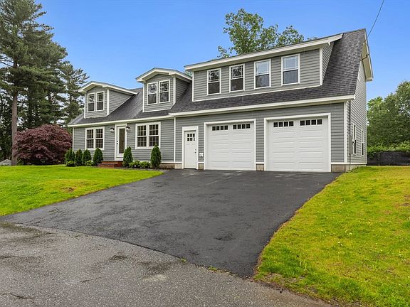 Expansive Energy Efficient 3-bedroom, 3-bath Cape with a 2-car garage, ideally located on a quiet side street and set on a flat corner lot! Enjoy direct access from the garage into the beautifully renovated kitchen featuring quartz countertops, center island, stainless steel appliances, tile backsplash, hood vent, and beverage fridge. The kitchen opens seamlessly to a formal dining area—perfect for entertaining. A spacious front-to-back living room offers access to the maintenance-free deck through a sliding door. The full bath completes the first floor. Upstairs, the primary suite impresses with a vaulted ceiling, large walk-in closet, and luxurious en suite with oversized tiled shower, niche, and glass enclosure. A cozy nook just outside the primary is ideal for a sitting area or second office. Two additional bedrooms share a Jack and Jill ¾ bath. The finished lower level offers even more space with a family room and dedicated office which also has laundry. What a great value!