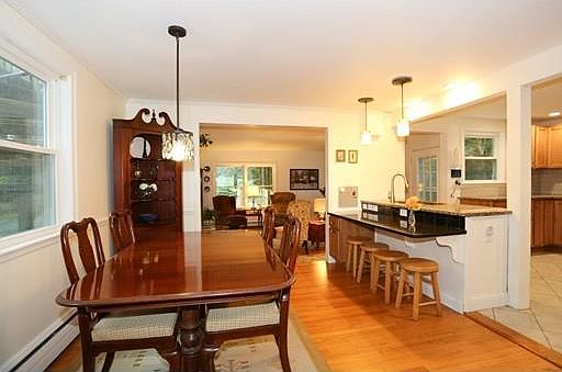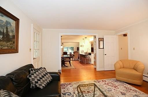 This lovely expanded cape, in a sought-after neighborhood, is on a well maintained lot that abuts an aqueduct. The inviting main level boasts an open style living space with gleaming hardwood floors, as well as a good sized bedroom and a study. The heart of this versatile space is the recently refurbished kitchen, which opens onto the dining area. Perfect for both hosting and day-to-day living! On a cold winter night, the living room, including fireplace and charming mullioned windows, is the place to be. The sunny family room overlooks an in-ground pool, large cabana and spacious patio area on one side and the level backyard on the other, melding the indoor and outdoor spaces. Upstairs are two additional bedrooms and the expansive master suite with beautiful views from its balcony. Short distance to schools and the town pool, this home is also close to major highways, shopping, walking trails and all that this popular area has to offer.